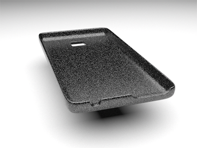 図 12. 中心:0.1cmノーマルスムージング:滑らかなレンダリングを実現します。デフォルトでは有効になっていて、連続的なシェーディングが得られます。稜角などのきわめて鮮明で細かい変位の表現に有効なファセットを使用してレンダリングする場合は無効にします。