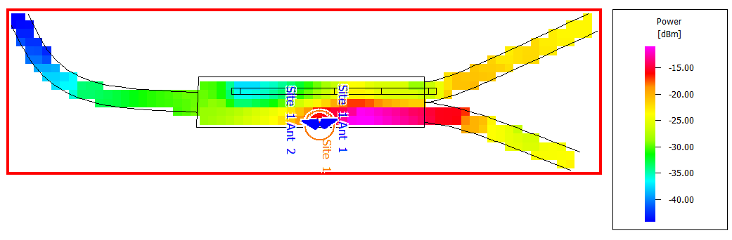 Propagation results show at every location the power received from each individual transmitter antenna. Figure 4 shows the results for Site 1 Antenna 1 at a height of 4 m (a predefined height).