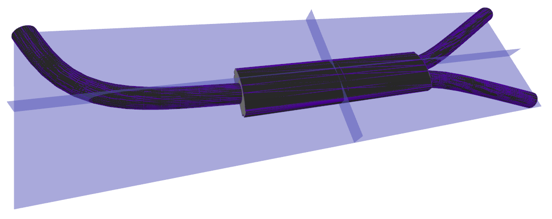 Track startpoints and endpoints are denoted “portals”. A track is a tunnel which does not need to have a constant cross-section. Cross-sections are defined in separate windows in TuMan and are assigned to segments of the tracks. This example has two cross-sections, denoted “tube tunnel” and “tube station”. The tube station is wide enough to connect to two tube tunnels.