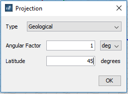 Select the type Geological, factor of 1 degree and 45º of latitude. Then click OK.