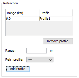 In the refraction section, select 6 km of range and the created refraction profile and press add.