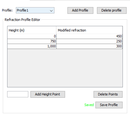 Add height points at 750 and 1000 meters and then change the refraction to match the image below. Then save the profile.
