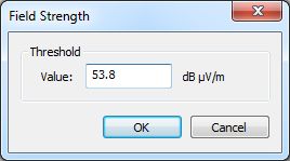The threshold tool is applied to prediction results computed for horizontal planes (area predictions) using an arbitrarily user defined threshold value. The Threshold Tool can be started by selecting from the Analysis menu or by pressing the corresponding button on the Analysis toolbar. The result to be considered has to be loaded using the File Browser prior to starting the tool. After starting the Threshold Tool a dialog opens, where the user defined threshold can be specified.