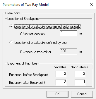 - The breakpoint distance depends on the height of the transmitter and receiver as well as the wavelength (the initial value is calculated according to ). This value can be modified by setting an additional offset (in meters).
