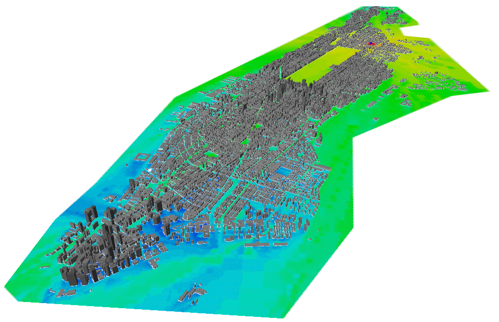 Fields can optionally penetrate into the buildings, but interior details of the buildings are not included. While fields can travel into an urban building, they cannot travel through an urban building and come out on the other side.
