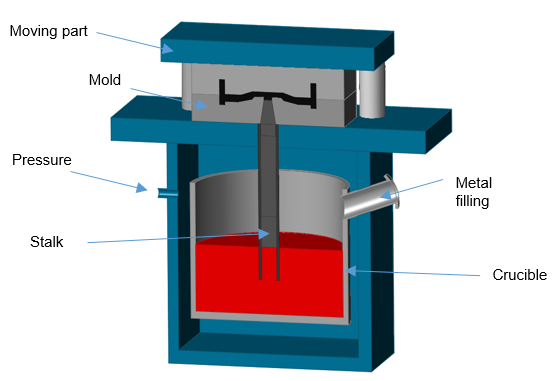 Low pressure die casting is a metal casting process generally used in situations that require high-quality manufacturing. In low pressure casting, molten aluminum is slowly drawn into a metal mold or die through a riser tube while kept under constant and controlled pressure. This process helps avoid oxidation, cold shuts, and air inclusions, generally producing excellent surface finish and highly accurate dimensions. However, it is much slower and therefore more costly than high pressure die casting.