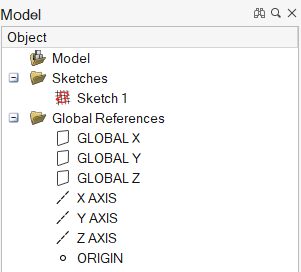 Global references are the global origin, axes, and planes shown in the modeling window. They can be helpful when creating and defining your model.