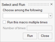 - Select a macro from the saved macros (or the last recorded macro) and define the execution (single/multiple).
