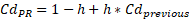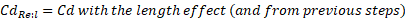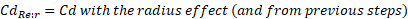 The Cd is not very sensitive to the Re. The minimum Re used in this equation is 10,000. The Cd used as the basis for the next step is always around 0.6