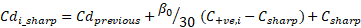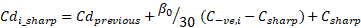 The plot demonstrates the incidence effect and may not represent the final Cd. The absolute value of the incidence angle is used in this equation. The maximum incidence angle allowed is 30o. The maximum c/d allowed is 0.20.