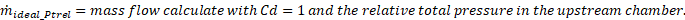 Static pressure relative to the rotational reference frame (i.e. rotor) at the restriction exit. Limited by critical pressure ratio for supersonic flows. |