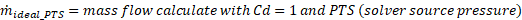 | CD | Compressible discharge coefficient (CDRLU) adjusted for effects of source pressure difference between empirical equations and Flow Simulator PTS. Same as the “Final Discharge Coefficient” already listed in the element output. | (unitless) |