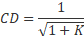 Head loss coefficient. Calculated from the discharge coefficient using equation |