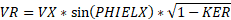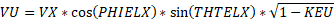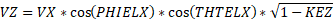 If 0 values are input for each of the exit head loss variables (KEZ, KEU and KER), the element exit velocity, VEX, is set to VX, and the relative radial and tangential flow angles at the exit plane (THTA and PH) are taken to be the values specified for the input variables THTELX and PHIELX respectively. If any of these exit head loss variables are input as non-zero values, the exit velocity components are recomputed as: