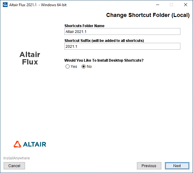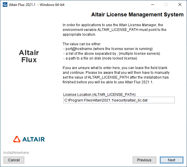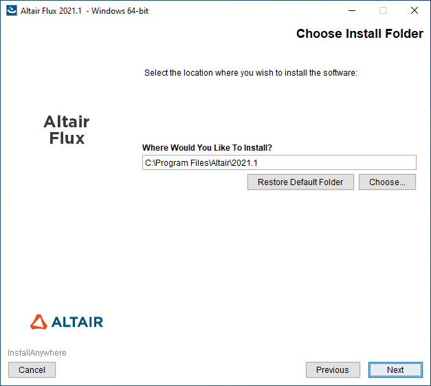- with a user account: the installation directory is C:\Users\<username>\Altair\2021.1