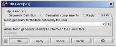 After a mesh generator is assigned to the face / volume, the Mesh tab of the face / volume dialog box is updated.