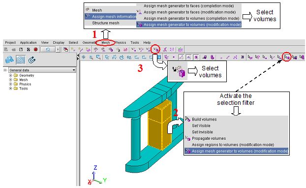| 1 | Activate the Assign mesh generator command (see next block) | |