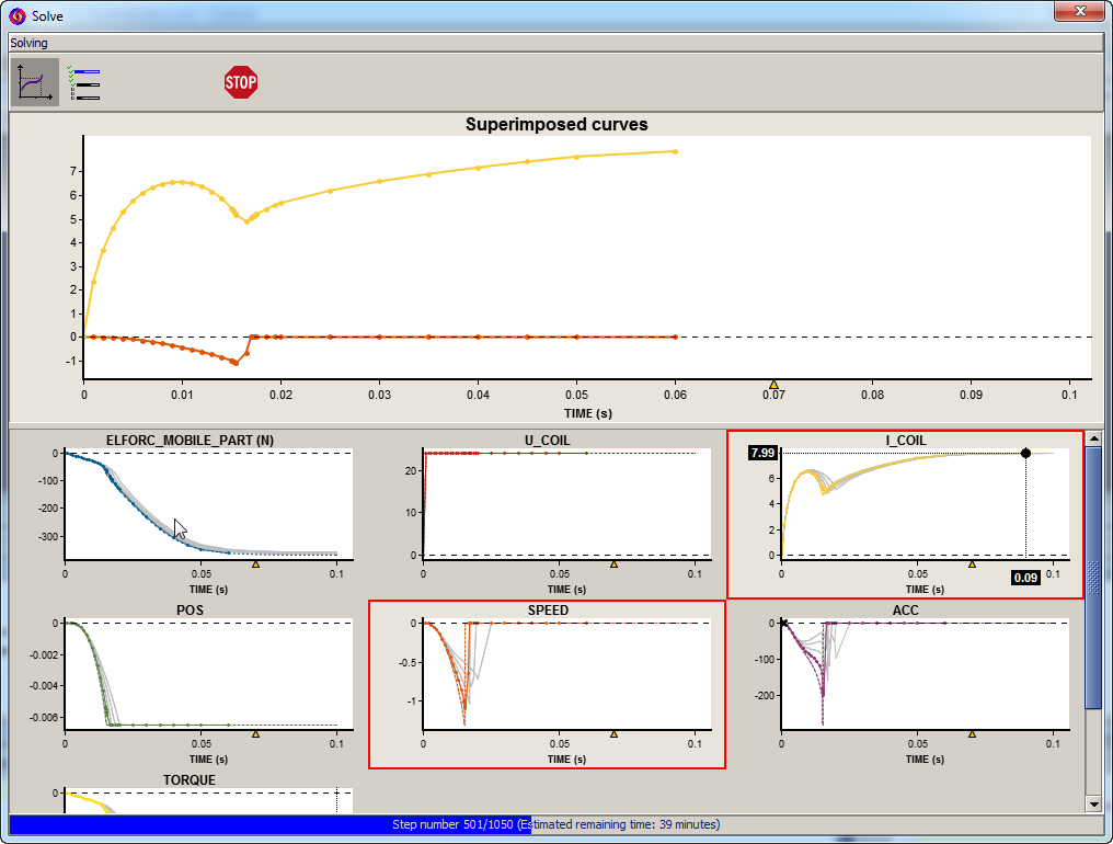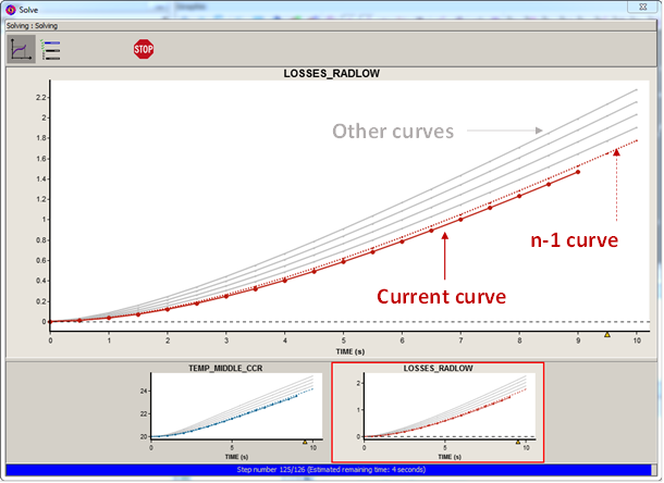 Only the curves being calculated for a given set of parameters are superimposed. All curves already calculated (gray and dotted curves) are not displayed.