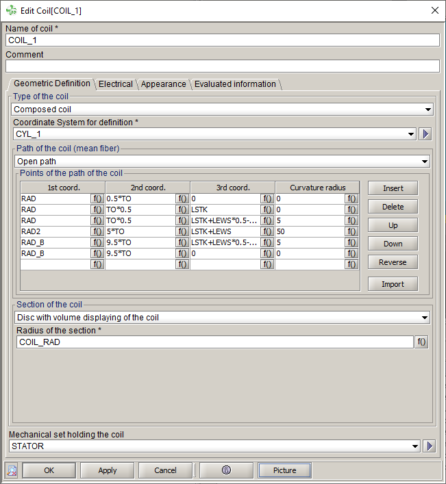 To facilitate the creation of composed coils (non meshed), several features are available in the creation dialog box :
