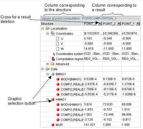Column corresponding to the structure The structure of computation point is displayed in the tabulated tree, which one can unfold according to the desired level of information.