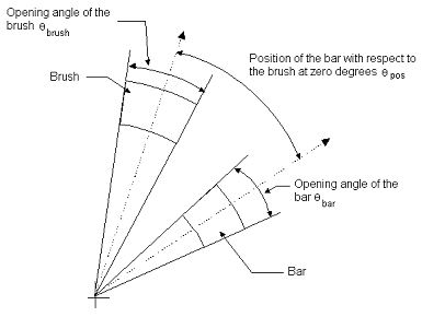 The brush-segment component is in full conduction whenever the mechanical angle of the rotor (θmec) is opposite to the angular position of the commutator segment with respect the brush (θpos).