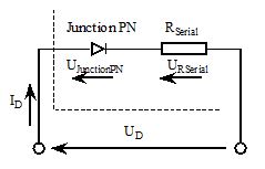 If we consider the equivalent diagram of the diode represented in the figure below, the voltage UD at the diode terminals is given by the sum: