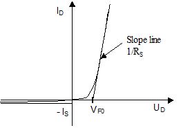 Typical values for these three parameters are proposed by default : VF0 = 0,7V ; RS = 0,1Ω ; IS = 106 A
