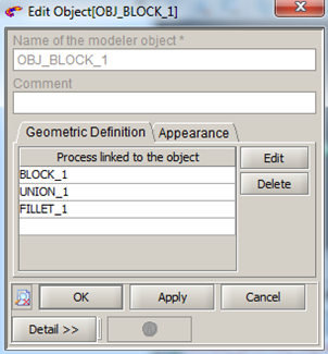 - The building tree of the objects on which the fillet / chamfer has been applied is modified (addition in its list of geometric operations of the fillet / chamfer operation)