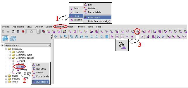To activate the Build faces command, choose one of the methods presented in the following figure: