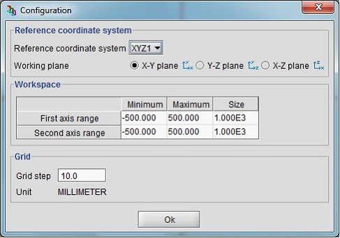 At the bottom of the dialog box, the user can modify the Grid step that will be placed on the workspace. The user will have the possibility to change this value at any moment (see Modification of the workspace ).