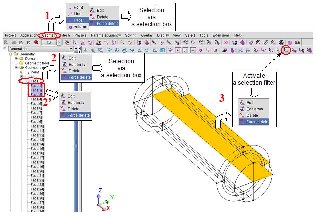 To activate the Delete / Force delete command, which requires data selection, choose one of the methods presented in the figure below: