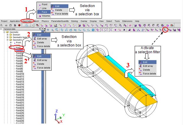 To activate the Edit command, which requires data selection, choose one of the methods presented in the figure below:
