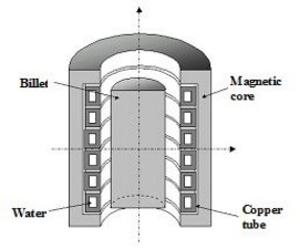 The study proposed in the “2D Induction heating tutorial” is the study of the induction heating of a steel billet.