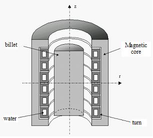 The device to be analyzed is a cylindrical billet, heated by the Joule effect of the induced current.