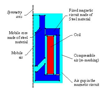 The study proposed in the " Translating motion tutorial " is the study of the cylindrical electromagnet of an electro-valve (with conical air gap).