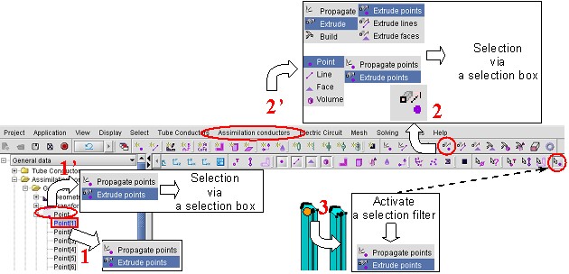 To activate the Extrude points command, which requires data selection choose one of the methods presented in the figure below: