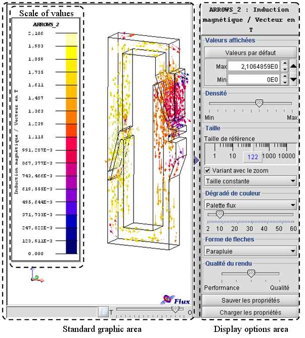 Standard graphic area Area comprising the geometric view of the device with the displaying of the calculated isovalues.