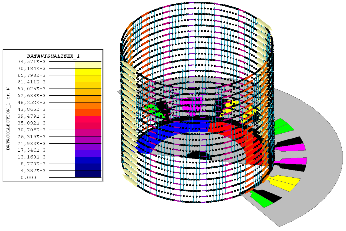 In the other hand, an approach for exporting global forces computed in Flux projects to OptiStruct is also available. This feature is called Global forces [RBE3] and allows the user to export a global force. Global forces are located at the barycenter of each group of related elements.