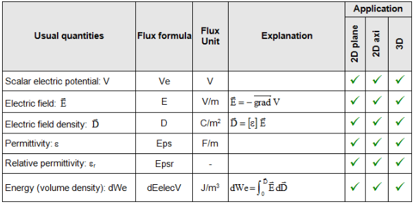 The local quantities available for the postprocessing in the Electro Static application are stored in two categories:
