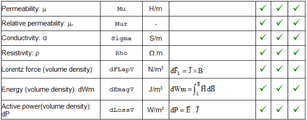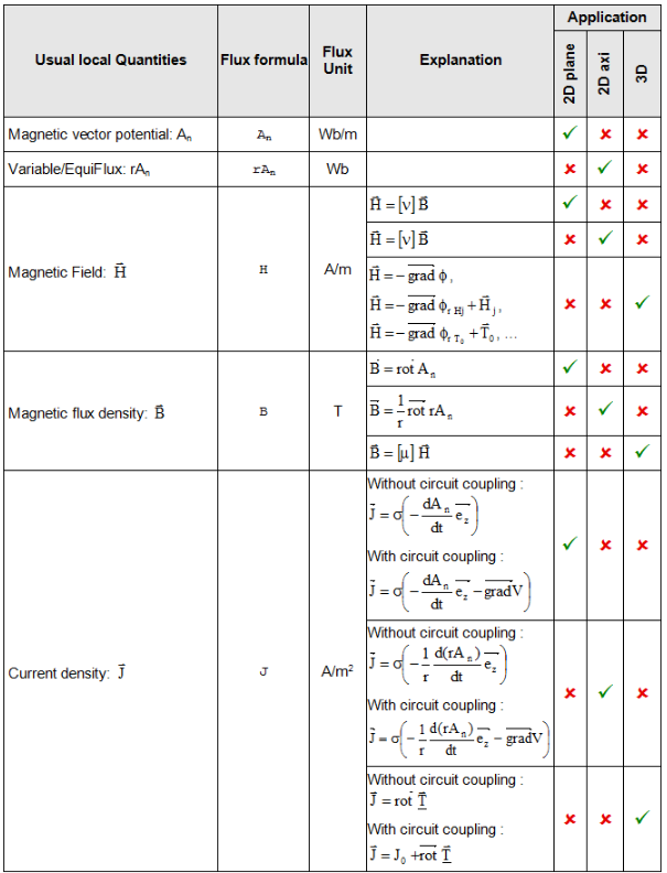 The local quantities available for the postprocessing in the Transient magnetic application are stored in two categories: