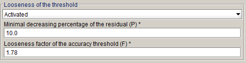 - The threshold: Relative epsilon value below which Newton-Raphson non-linear solver stops. Depending on the activation of looseness and/or strengthening, this threshold is fixed or is the starting point of the adaptive criteria strategy. Default value is 10e-4.