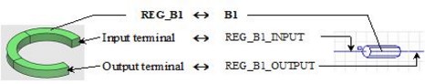 By orienting the volume region, the user defines the REG_B1_INPUT, REG_B1_OUTPUT component terminals and orients them in the circuit.