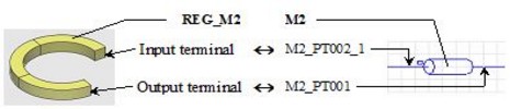 The geometric terminals of the REG_B1 and REG_M2 conductors are the input/output faces presented in the next figure.