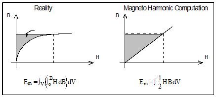 The equivalent B(H) dependence for Steady state AC Magnetic computations is calculated in such a way that the density of the time average magnetic energy per period of magnetic field time variation obtained starting from the real B(H) curve should be equal to the density of the magnetic energy given by the equivalent B(H) dependence.