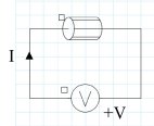 I negative: the current flows from the exiting terminal towards the entering terminal |