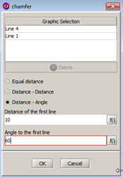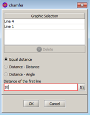 After the activation of this mode, a dialog box containing all the necessary fields and options to apply a chamfer will appear.