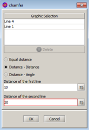 The sketcher mode of construction « Chamfer » permits the user to cut a corner by inserting a segment. This chamfer can be defined in 3 different manners: