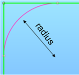 Radius Radius of the arc that will represent the corner rounding (to enter)