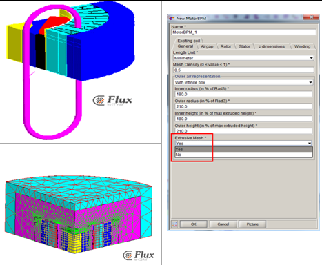 - If symmetry is taken into account, we recommend to enter ½ of the actual length of the stator, the rotor and the magnet in the Oz direction.