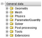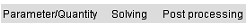 | Access to the different menus: Parameter/Quantity, Solving process, Post-processing |